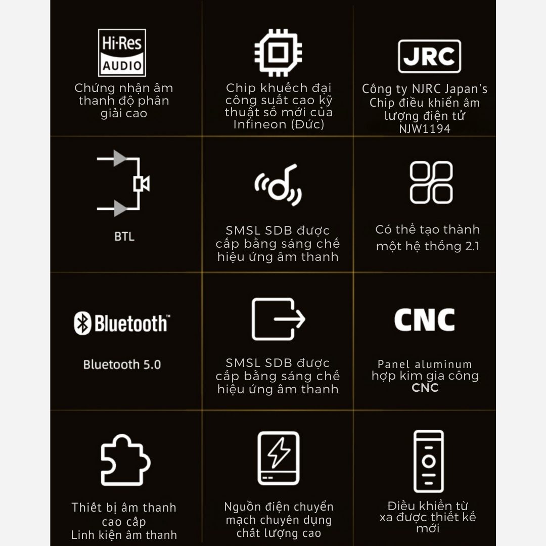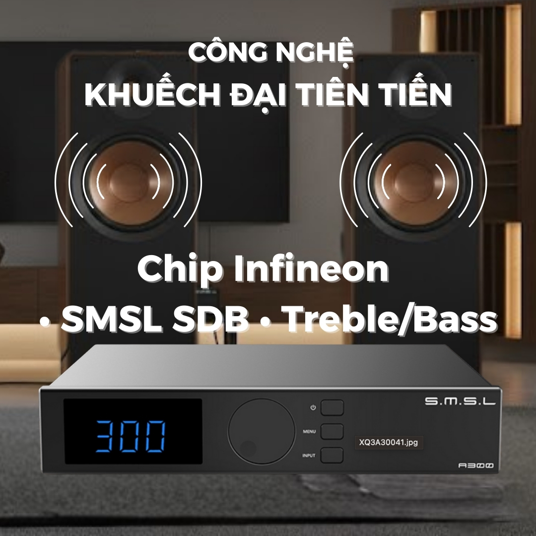 Công nghệ âm thanh độc quyền: Tích hợp âm thanh bằng sáng chế SMSL SDB cùng khả năng chỉnh Treble/Bass linh hoạt.