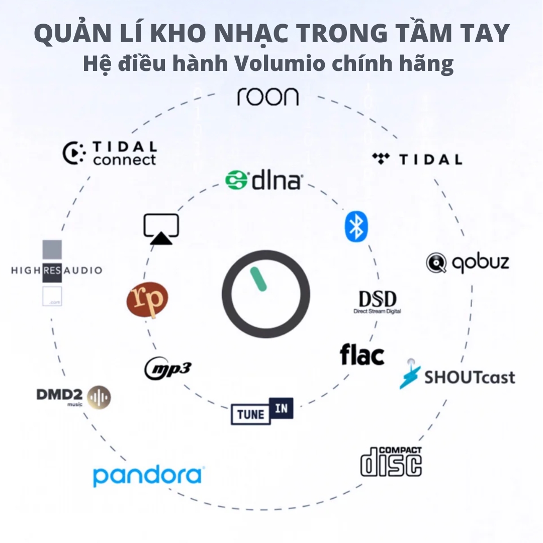 Hợp tác chính thức với Volumio: Đảm bảo tính ổn định tối đa và giao diện điều khiển mượt mà, chuyên nghiệp nhất hiện nay.