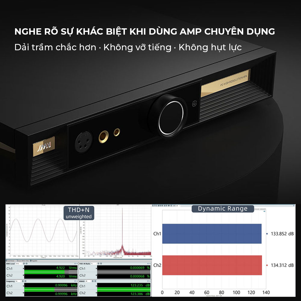 Độ méo THD+N: -123dB, 0.00006% (1kHz, 32 Ω)