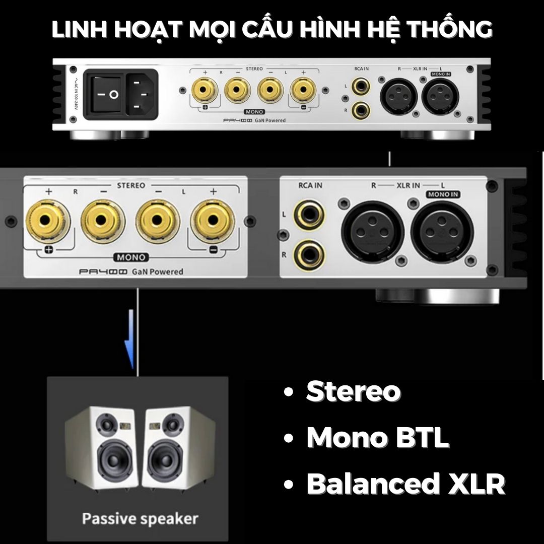 Công nghệ Gallium Nitride (GaN) từ Infineon: Sử dụng bóng bán dẫn GaN mới nhất giúp nâng tần số chuyển mạch lên 1MHz, loại bỏ hoàn toàn hiện tượng méo tiếng thường thấy ở Class D truyền thống, mang lại âm thanh mượt mà như Class A nhưng hiệu suất cực cao.