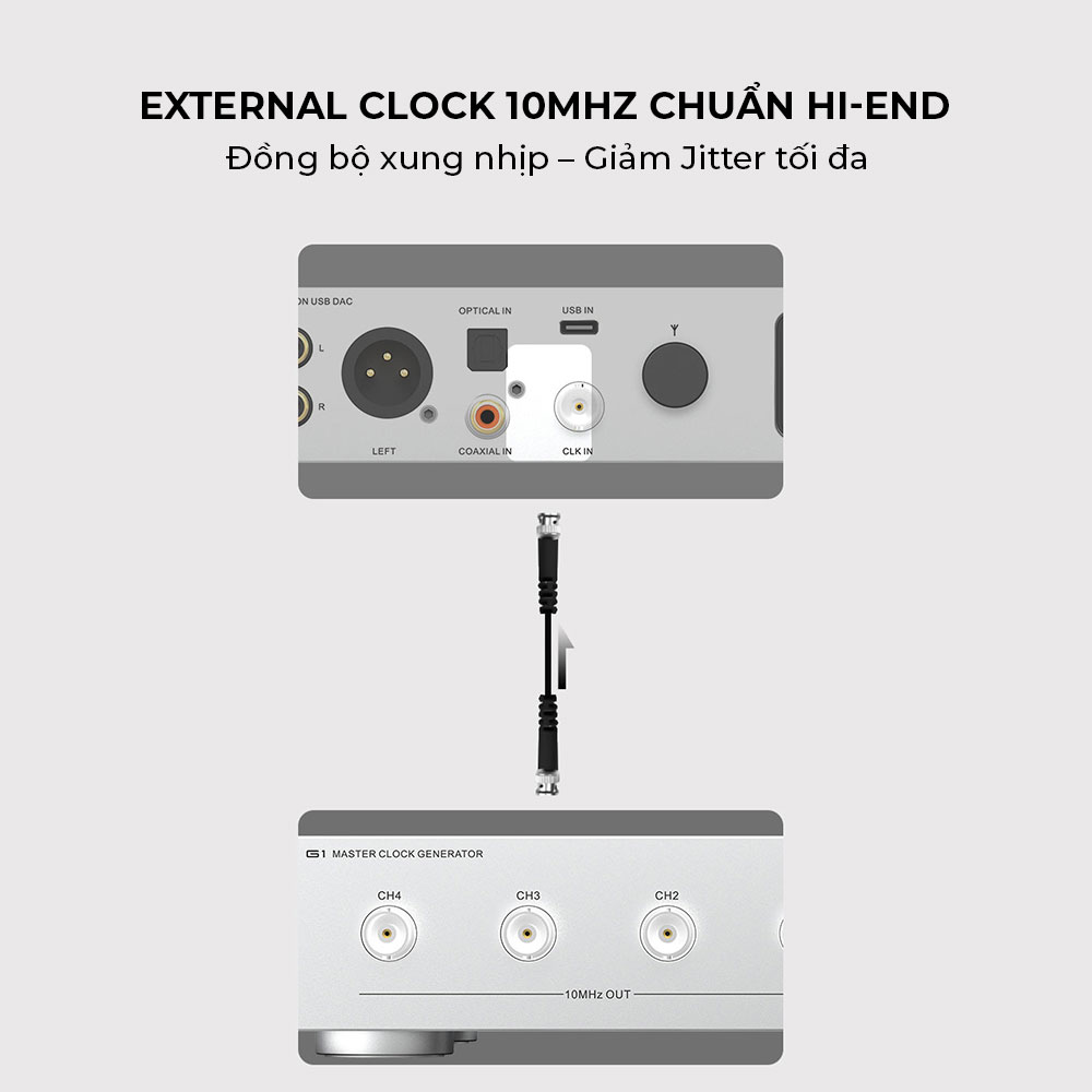 Hệ thống Clock chuyên nghiệp: Tích hợp mạch CK-03 tự phát triển và đặc biệt là cổng External Clock Input (10MHz) hiếm thấy trong tầm giá, giúp đồng bộ hóa tín hiệu cực kỳ chính xác.
