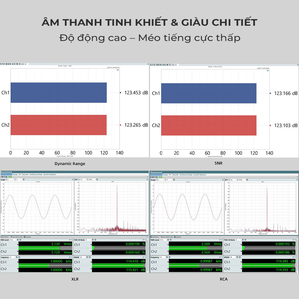 Dải động (Dynamic Range),"123dB (XLR), 121dB (RCA)"